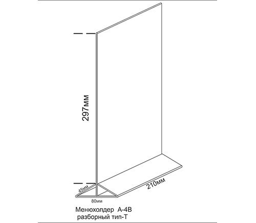 МЕНЮХОЛДЕР ФОРМАТА А-4, С НИЖНЕЙ ЧАСТЬЮ РАЗЛИЧНЫХ ЦВЕТОВ, КЛАСИЧЕСКОГО ВИДА. СОСТОИТ ИЗ ДВУХ ЧАСТЕЙ, ПРОЗРАЧНОГО Т-ОБРАЗНОГО ПЛАНШЕТА И НИЖНЕГО ДЕРЖАТЕЛЯ, ТРЕУГОЛЬНОЙ ФОРМЫ. ВОЗМОЖНО НАНЕСЕНИЕ ЛОГОТИПА.