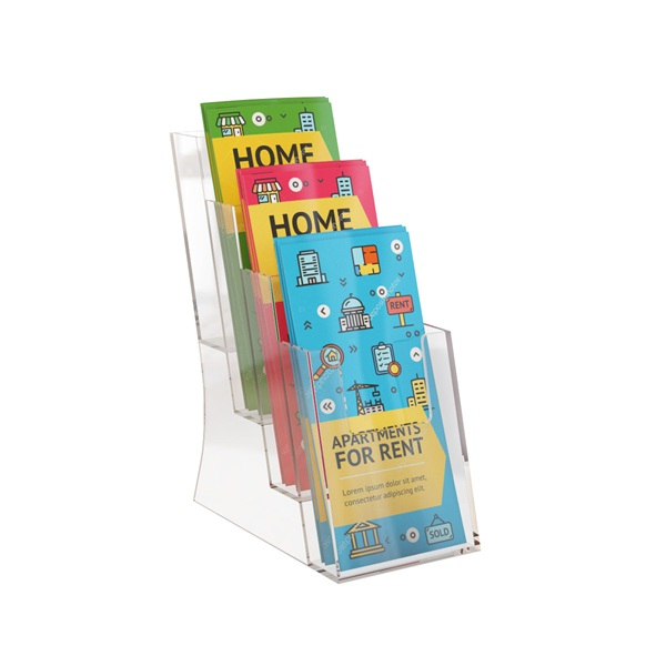 Держатель буклетов настольный "Квартет" 1/3 А-4 4-секции — прозрачная подставка для каталогов и буклетов с 4 секциями для рекламных материалов формата 1/3А4.