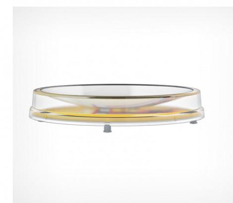 Круглая монетница RONDA — раскладная конструкция из основания и крышки, которые легко совмещаются и закрываются на защёлкивающийся замок. Некоторые характеристики: материал — пластик размер — 172×24 мм диаметр рекламного поля — 166 мм цвет — прозрачный 4 прорезиненные ножки для установки на любой поверхности используется для организации расчёта с покупателями и в качестве рекламоносителя. Производитель: Россия.