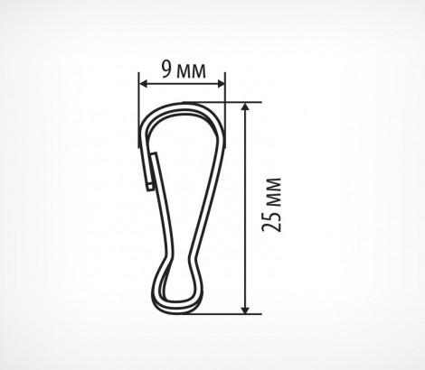 Малый металлический карабин предназначен для крепления рекламных вывесок к металлическому тросу или цепочке. Размыкается при нажимании на боковую часть пальцем.