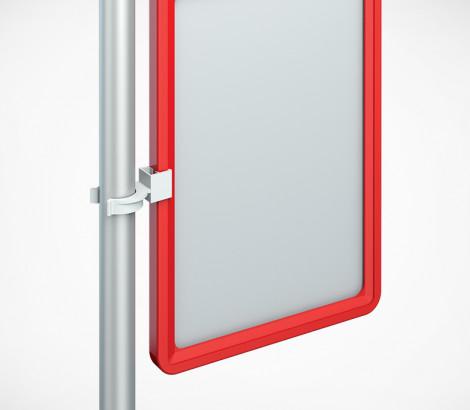 Клипса для крепления пластиковых рамок на трубах Ø 22-25 мм. Подходит для крепления пластиковых рамок на трубу JOKER. Рекомендуется использовать с рамками А6, А5, А4, А3, А2. Для крепления одной рамки необходимо две клипсы.Изготовлена из ударопрочного пластика.
