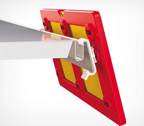 Клипса защелкивается на краю полки, обеспечивая небольшой наклон рамки к покупателю. Рекомендуется использовать 2 клипсы для крепления каждой рамки.