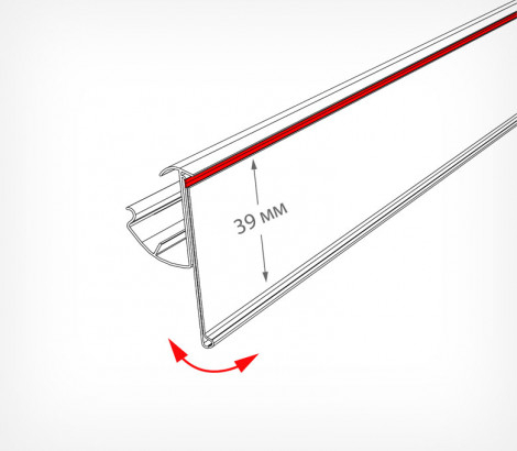 Ценникодержатель для полок MODERN EXPO. Гибкое крепление обеспечивает откидывание ценника вверх.