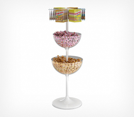 Дисплей UNIBOWL-17-24-HP-6 — это компактный дисплей с двумя чашами объёмом 17 и 24 литра и платформой с крючками.