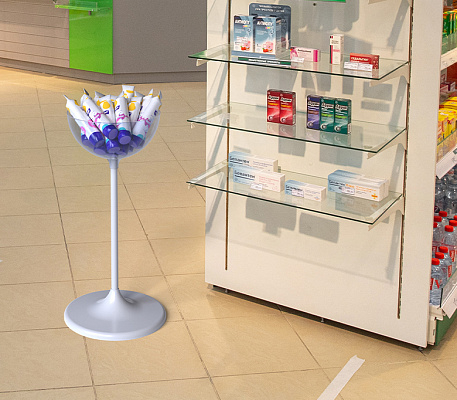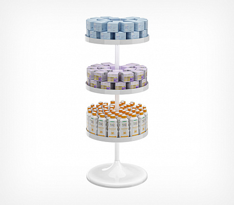 Двухуровневый дисплей UNIBOWL-TOWER-24 предназначен для выкладки продовольственных и непродовольственных товаров в компактной упаковке.