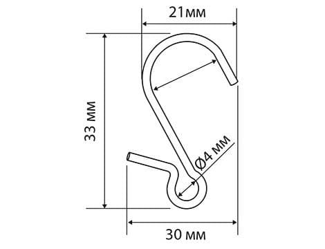 S-образный крючок специальной формы, для подвешивания, длиной 33 мм.